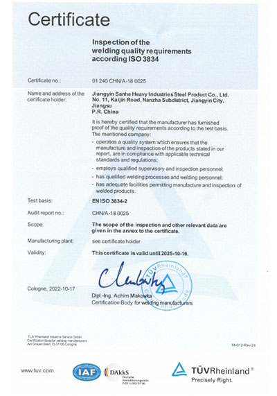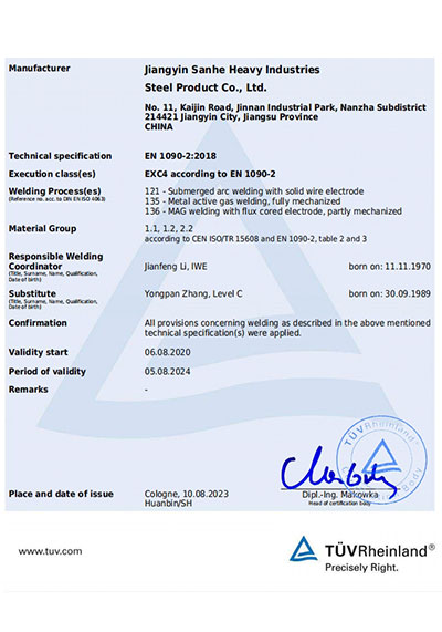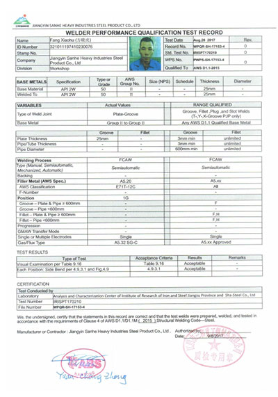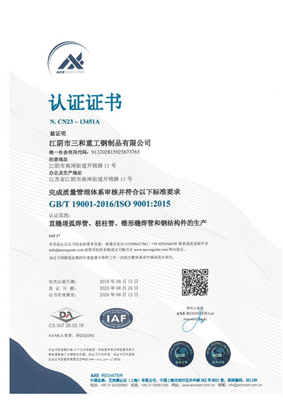 江陰市三和重工鋼制品有限公司成立于2012年3月,總投資1.2億,坐落于江蘇省江陰市南閘錦南工業(yè)區(qū),占地4萬(wàn)平方米,廠(chǎng)房面積3萬(wàn)平方米。專(zhuān)業(yè)從事大口徑厚壁直縫埋弧焊接(LSAW)鋼管、方管、錐管,RBE卷制埋弧焊接鋼管的研發(fā)、生產(chǎn)和銷(xiāo)售。公司憑借著嚴(yán)謹(jǐn)?shù)漠a(chǎn)品質(zhì)量管理,先后通過(guò)了ISO三體系認(rèn)證,RS、BV等船社級(jí)工廠(chǎng)認(rèn)證,同時(shí)取得了CE CPR,API2B等歐美地區(qū)資質(zhì)認(rèn)證。公司擁有一條完整的,可以生產(chǎn)單支長(zhǎng)度達(dá)到12米的JCO直縫埋弧焊鋼管生產(chǎn)線(xiàn)(品牌:美國(guó)林肯) ,3套卷管生產(chǎn)線(xiàn)以及異型管生產(chǎn)線(xiàn)。公司主要產(chǎn)品有各種大小厚壁直縫埋弧焊管、卷管、方管、矩形管、錐管、多邊形管等,主要以厚壁管為主??砂磭?guó)家標(biāo)準(zhǔn)GB9711 、GB50250 系列 ,國(guó)際標(biāo)準(zhǔn)API? SPEC 2B及EN10210、EN10219、EN10208、 A671、A672等生產(chǎn)各種規(guī)格鋼管,年綜合產(chǎn)能達(dá)20萬(wàn)噸,產(chǎn)品廣泛應(yīng)用于海上 石油鉆井平臺(tái)、輸煤漿、輸水、特高壓輸電鐵塔電,石油化工、高層建筑鋼結(jié)構(gòu)建筑工程、大型海洋碼頭樁管等領(lǐng)域。公司擁有一支由我國(guó)制管行業(yè)領(lǐng)先的技術(shù)團(tuán)隊(duì),并與國(guó)內(nèi)制管技術(shù)與工藝方面的專(zhuān)家、科研院所建立了密切的合作關(guān)系, 研發(fā)能力處于國(guó)內(nèi)先進(jìn)水平,專(zhuān)門(mén)生產(chǎn)厚壁鋼管。為擴(kuò)大產(chǎn)能,滿(mǎn)足對(duì)客戶(hù)長(zhǎng)直管的需求,2023年11月30日,在靖江:江陰-靖江工業(yè)園區(qū)成立了三和重工的全資子公司:江陰市永祥鋼制品有限公司,可以對(duì)接環(huán)焊總長(zhǎng)超過(guò)三十米的焊接鋼管及各類(lèi)型鋼結(jié)構(gòu)產(chǎn)品。江陰市三和重工鋼制品有限公司扎根于江陰,放眼于全球,通過(guò)持續(xù)的產(chǎn)業(yè)規(guī)模擴(kuò)張和技術(shù)提升,立志成為大直縫埋弧焊管行業(yè)具有國(guó)際影響力的企業(yè)。